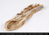 Cinto de fios de algodão trançados em duas cores, medindo 1,24 m e arrematado em franjas.