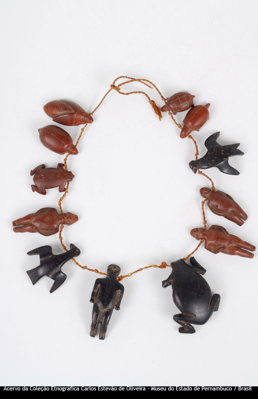 Colar Voltar Miniatura Compartilhar PovoTukunaDescriçãoColar de figuras zoomorfas, feitas de caroço, medindo 14 cm.Identificador64CategoriaDiversosMateriaisCaroço de tucumã (Astrocaryum tucuma Mart.) | Fios de tucum (Astrocaryum sp.) Continue navegando Colar Colar Voltar para a página de itens