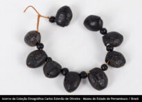 Colar Voltar Miniatura Compartilhar PovoTukunaDescriçãoColar de sementes intercaladas com figuras zoomorfas, feitas de caroço, medindo 23 cm.Identificador73CategoriaDiversosMateriaisCaroço de tucumã (Astrocaryum tucuma Mart.) | Sementes Continue navegando Colar Colar Voltar para a página de itens