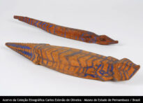 Escultura Voltar Miniatura Compartilhar PovoPalikurDescriçãoEscultura zoomorfa (jacaré), de madeira, medindo 27,5 cm, com pintura em azul.Identificador135CategoriaObjetos em madeiraMateriaisMadeira Continue navegando Escultura Escultura Voltar para a página de itens