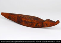 Escultura Voltar Miniatura Compartilhar PovoPalikurDescriçãoEscultura zoomorfa (jacaré), de madeira, medindo 46 cm, com pintura linear e pontilhada em marrom.Identificador142CategoriaObjetos em madeiraMateriaisMadeira Continue navegando Escultura Escultura Voltar para a página de itens