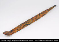 Escultura Voltar Miniatura Compartilhar PovoPalikurDescriçãoEscultura zoomorfa (cobra), de madeira, medindo 66 cm, com pintura linear e pontilhada em azul.Identificador148CategoriaObjetos em madeiraMateriaisMadeira Continue navegando Escultura Escultura zoomorfa Voltar para a página de itens