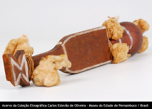 Maracá Voltar Miniatura Compartilhar PovoPalikurDescriçãoMaracá cerimonial, de cabaça, medindo 53 cm, com o cabo de madeira, espatulado e pingentes de algodão e penas.Identificador100CategoriaInstrumento musicalMateriaisAlgodão | Cabaça (Crescentia cujete L.) | Penas de arara vermelha Continue navegando Fuso Vaso Voltar para a página de itens