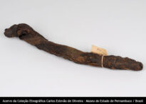 Tocha de pano embebido em cerol, medindo 33 cm de comprimento.