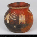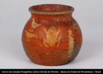 Vaso simétrico de boca constrita, contorno composto e forma esferoidal. Base plana. Borda expandida, cambada e extrovertida. Lábio plano. Medidas: altura - 11 cm; largura máxima - 12,5 cm; diâmetro externo da boca - 9,5 cm; diâmetro da base - 9 cm.